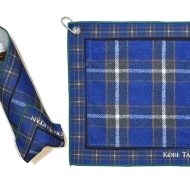 デザインは左右で正バイアスと水平・垂直のタータンに分かれており、上下のブルーとバーガンディーのラインにはグラデーションが施されており、