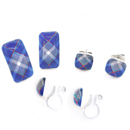 ぷっくりタイルの四角いピアス。サージカルステンレスでお肌に優しい材質。イヤリングはシリコンタイプのノンホールデザインで、こちらも金属アレルギー対応です。