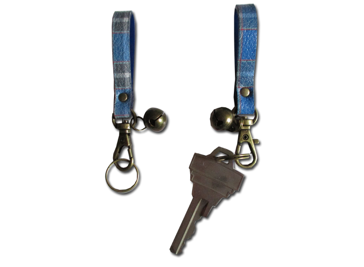 神戸タータン合皮の端材を用いたミニキーストラップです。落とした時に気が付きやすい鈴付き、手軽に使う自転車やロッカーキー等に付けておくと便利です。バッグやリュックのチャームとしてもおススメです。リーズナブルな価格でちょっとした神戸土産にどうぞお役立て下さい、